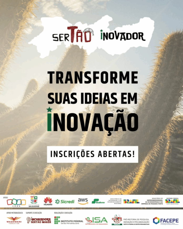 Estão abertas, até o dia 6 de junho de 2025, as inscrições para a nova edição do SerTão Inovador, programa gratuito de pré-incubação promovido pelo Instituto Federal do Sertão Pernambucano (IFSertãoPE), por meio da Incubadora do Semiárido (ISA) e do Sertão Maker.