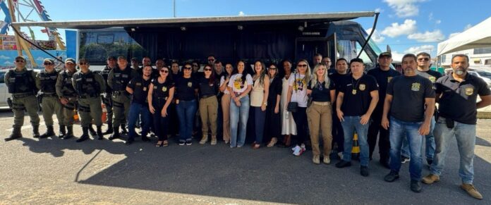 Na Praça Voluntários da Pátria, equipes realizaram panfletagem e atendimento no ônibus do Departamento de Polícia da Mulher (DPMUL), garantindo o registro de boletins de ocorrência e a emissão de medidas protetivas para quem precisava de proteção imediata.