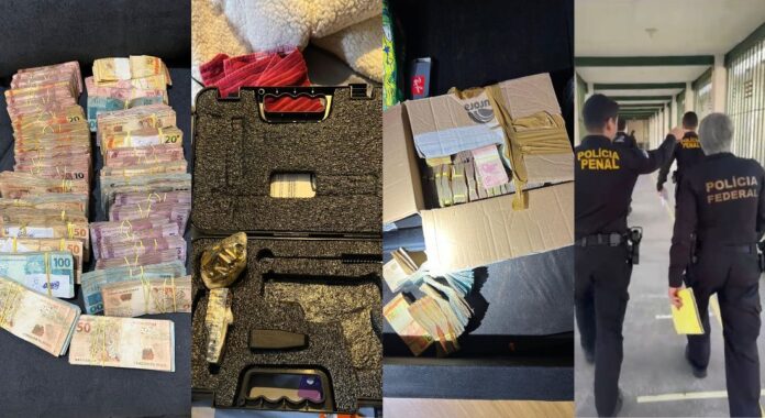 Até o momento, uma grande quantia de dinheiro em espécie foi apreendida, além de armas, munições e celulares.